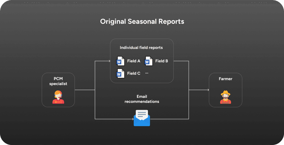 Seasonal reports were generated as static word documents per field and lacked actionable feedback.